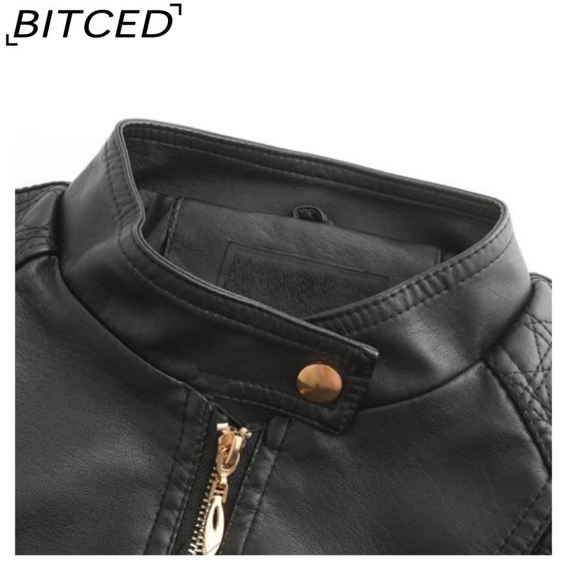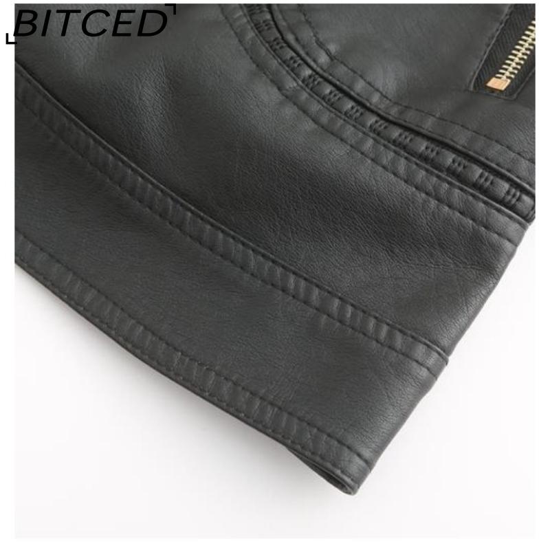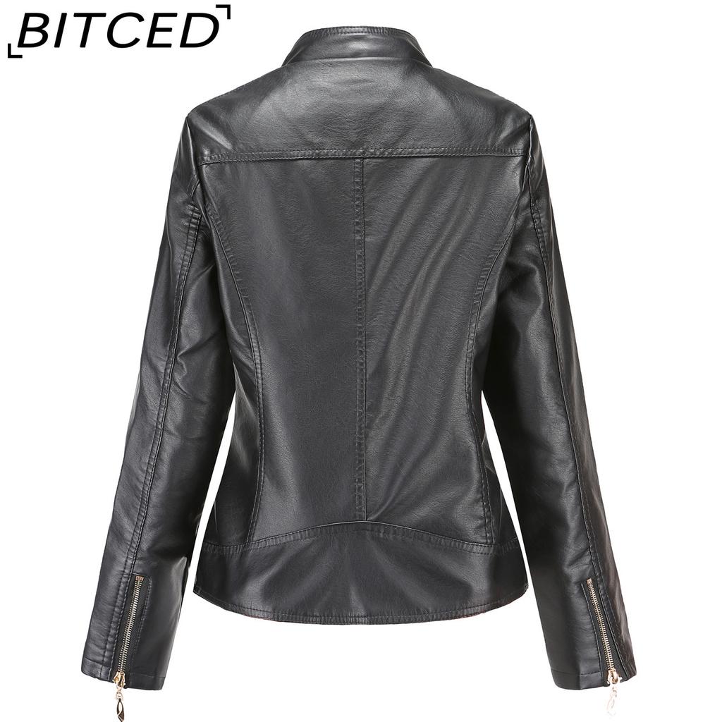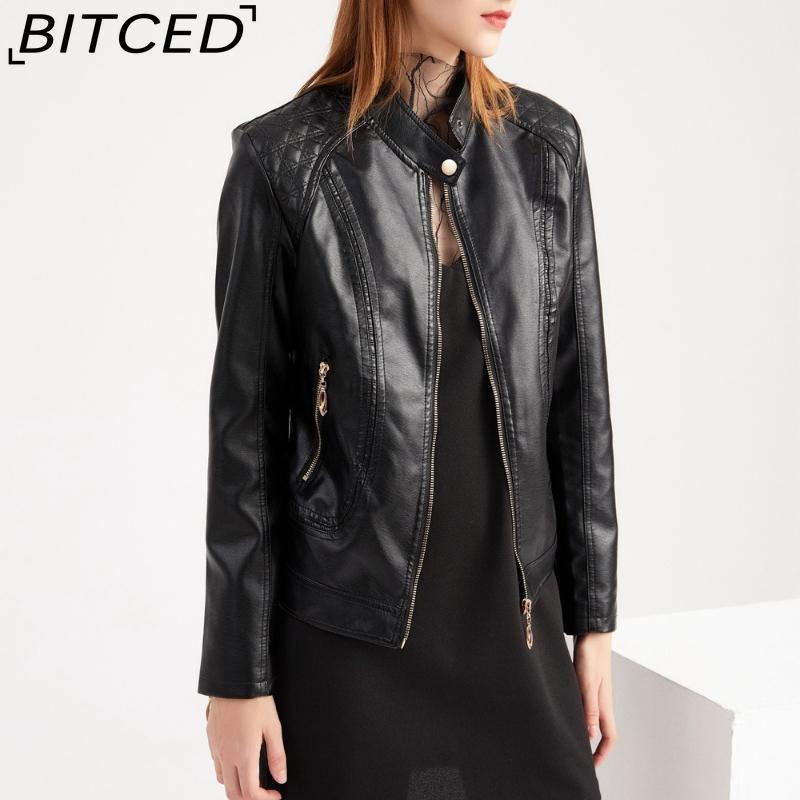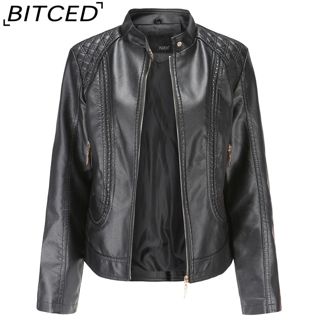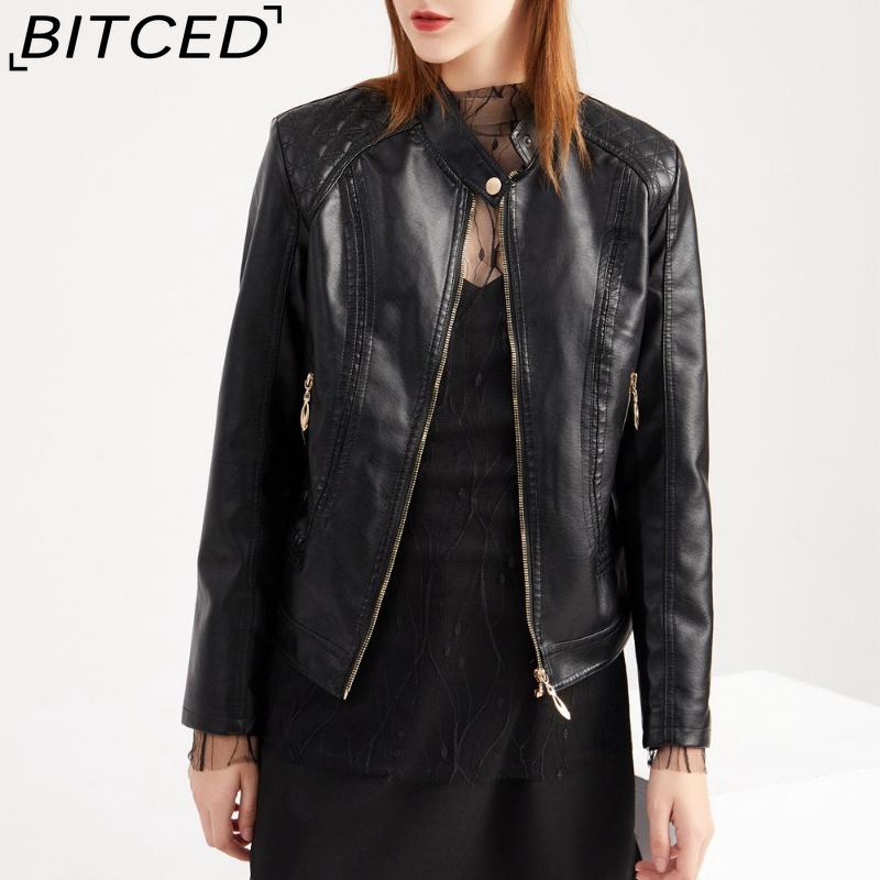 BITCED Весенне-осенняя женская кожаная куртка Женская элегантная кожаная куртка большого размера со стойкой