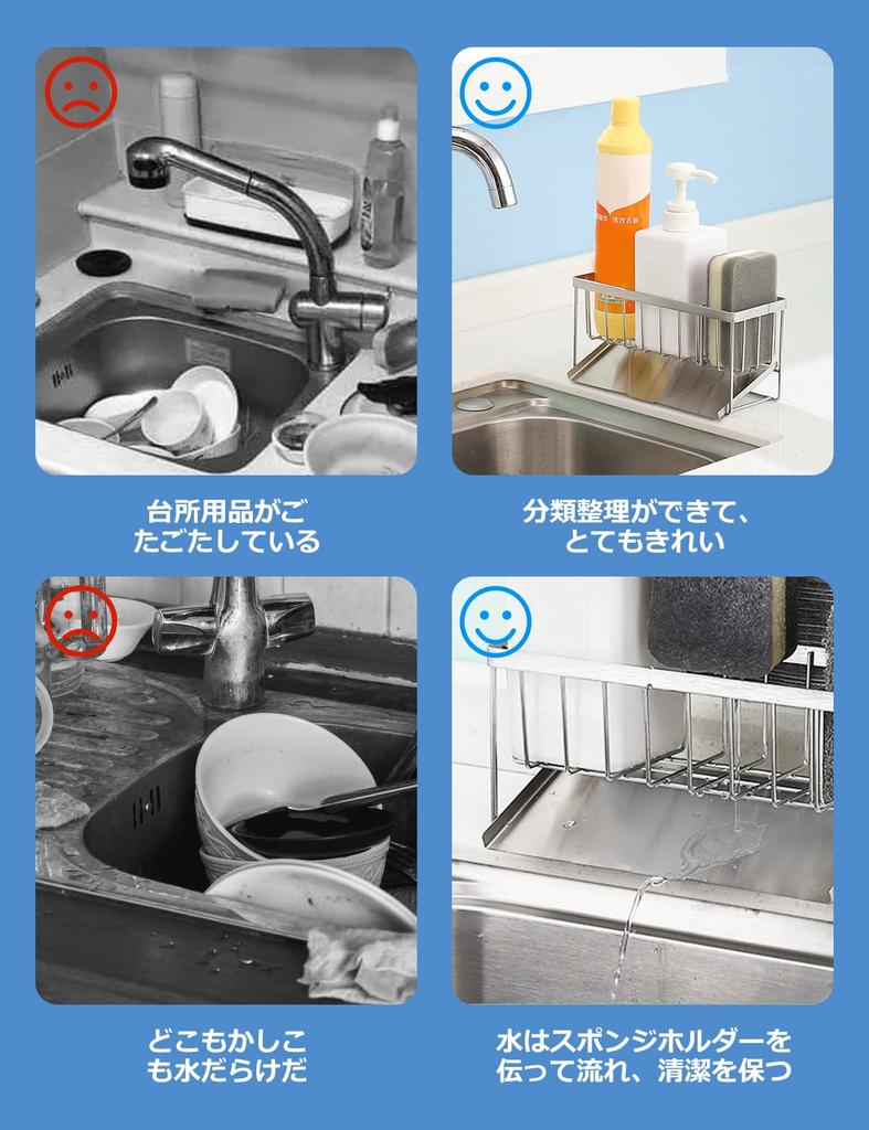 Подставка для губок и моющего средства из нержавеющей стали, держатель для чистящей щетки с подвижным хранением [Новейшая модель], устойчивый к ржавчине держатель, Кухня,