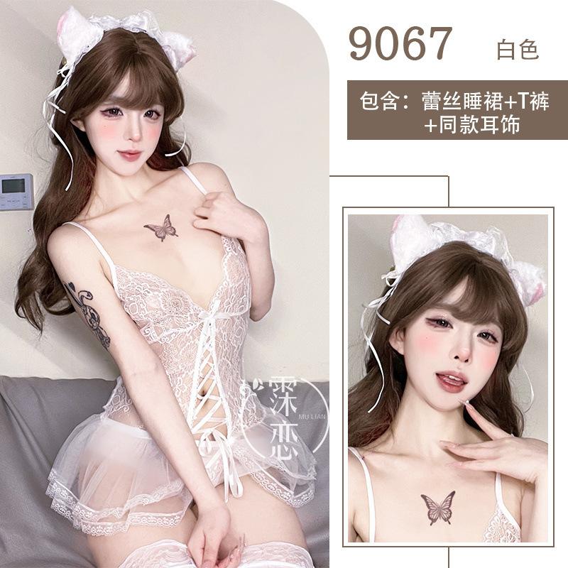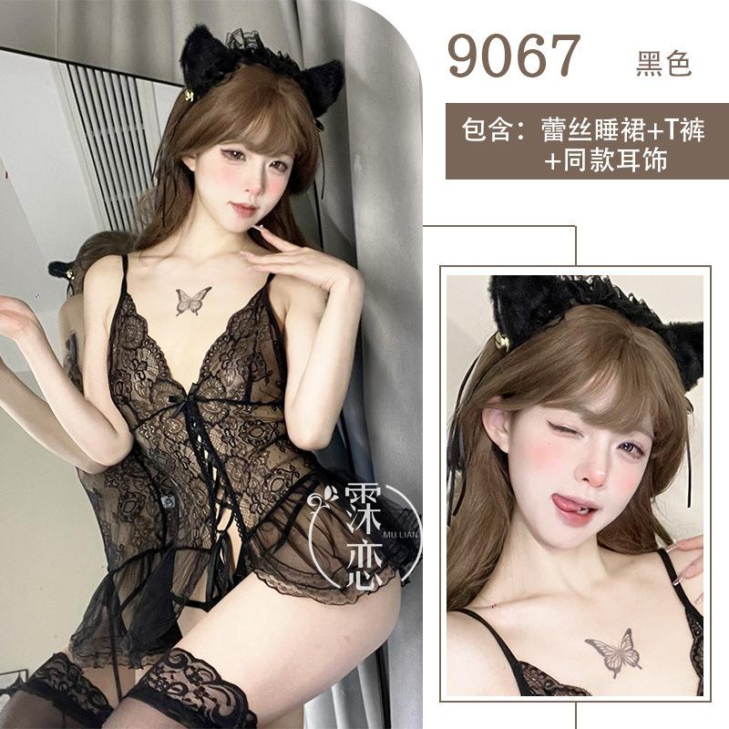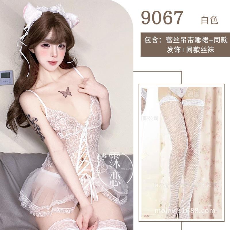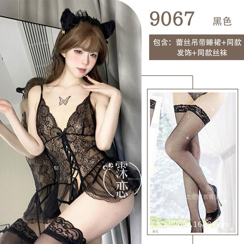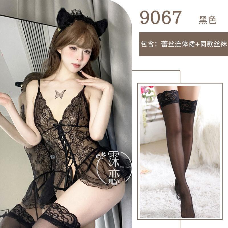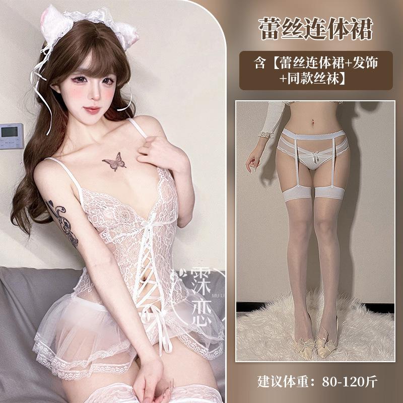 Сексуальное нижнее белье Сексуальный кружевной пояс для чулок Цельный костюм Женщины-кошки Свободный Показывающий маленькую грудь Большой Прозрачная сетка