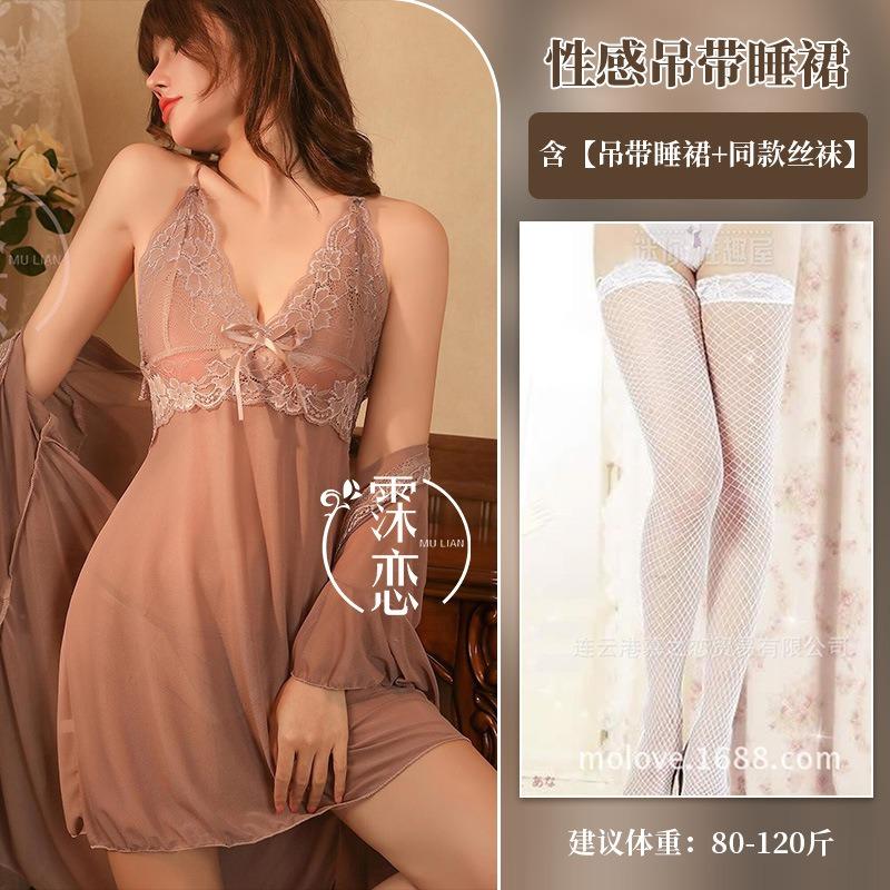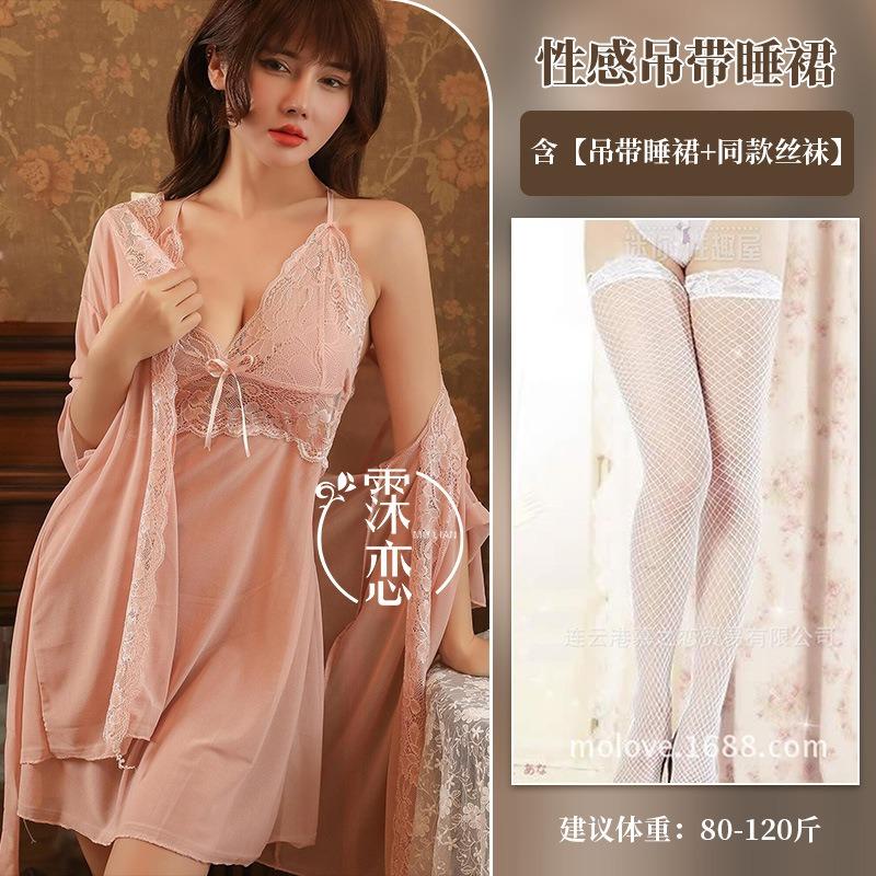 Сексуальное нижнее белье чистое желание подвязки ночная сорочка комплект из трех предметов кружево перспектива флиртующая одежда