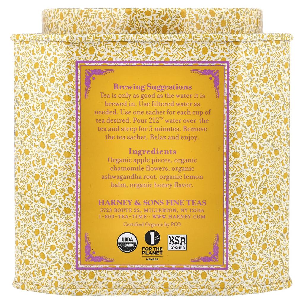 Ингредиенты: Органические яблочные дольки, органические цветки ромашки, органический корень ашваганды, органическая мелисса, органический медовый ароматизатор.