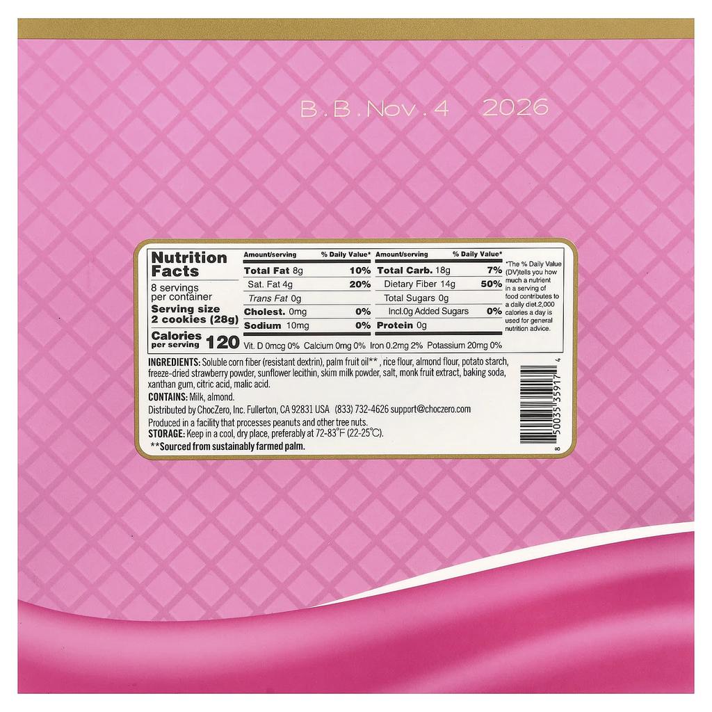 ChocZero, Premium Cookies, Wafers, Strawberry Flavor, 16 Cookies, 8 oz (224 g)