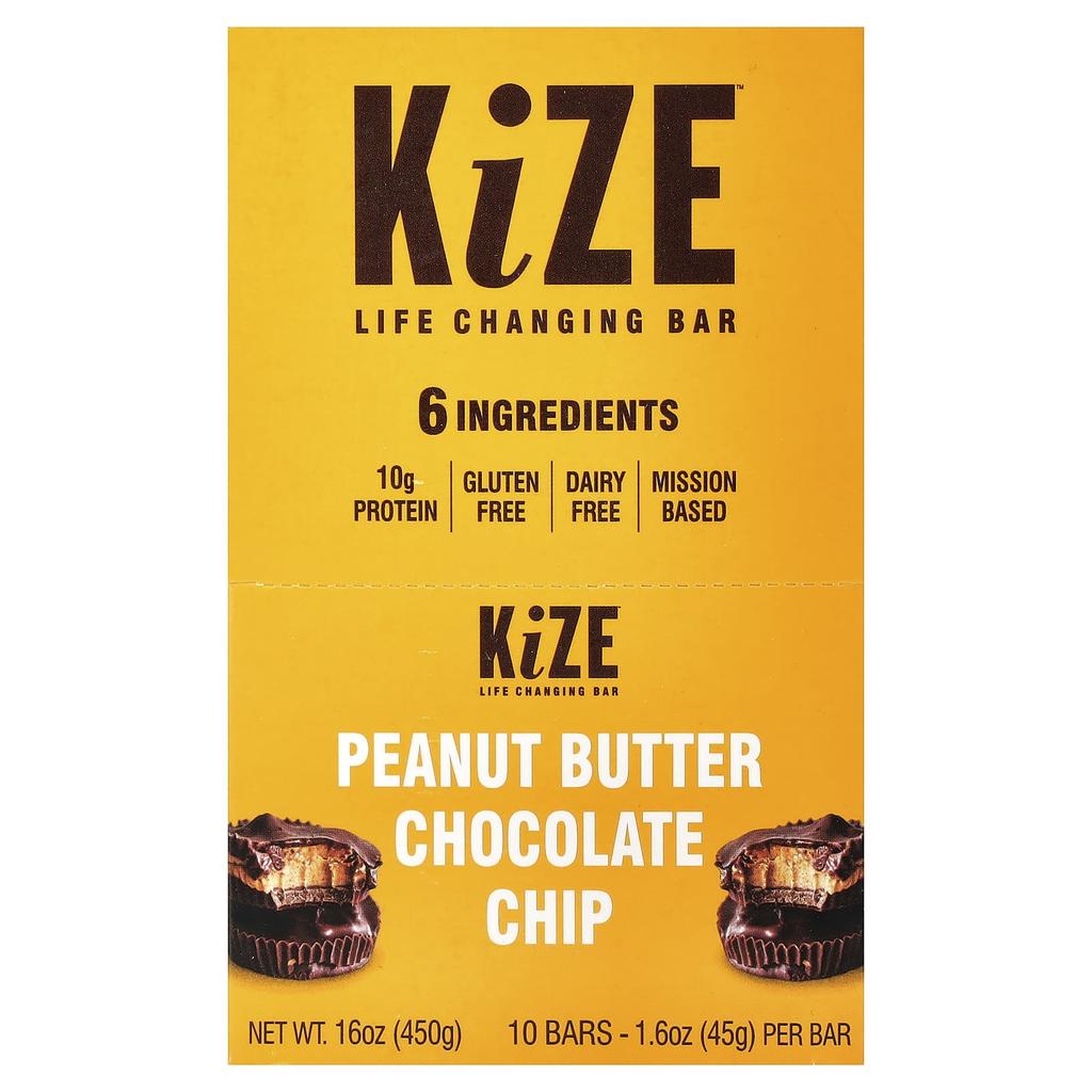KiZE Life Changing Bar, Peanut Butter Chocolate Chip, 10 Bars, 45g (1.6oz) Each — купить товар онлайн с бесплатной доставкой по всему миру!