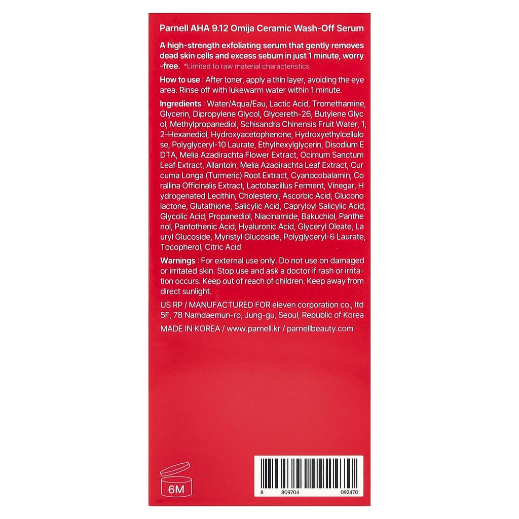 Parnell AHA 9.12 Керамическая смываемая сыворотка Omija, 30 мл (1,01 жидких унций)