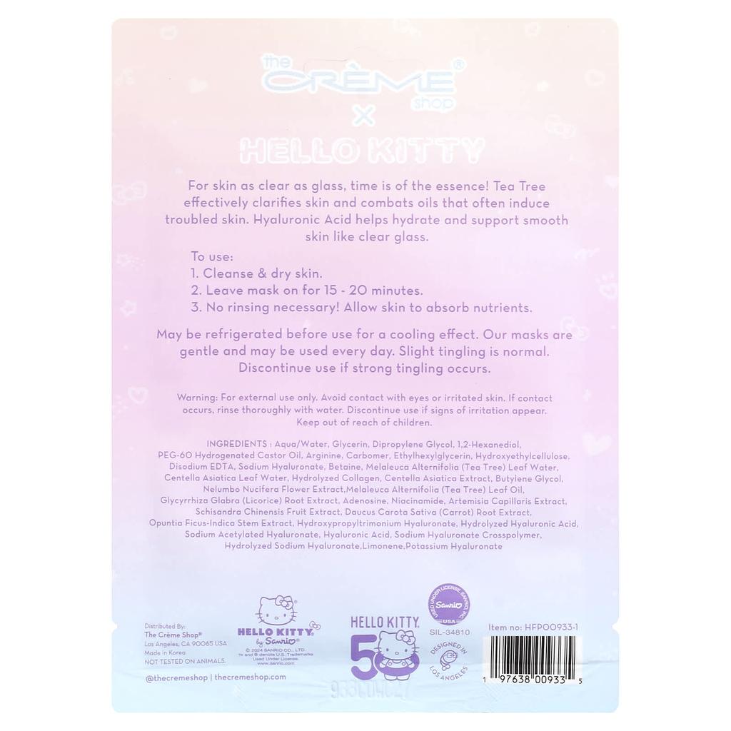 The Creme Shop, Hello Kitty®, Принтованная эссенциальная тканевая маска для лица, Чувствуй себя таким чистым, 1 шт., 25 мл (0,84 жидких унции)