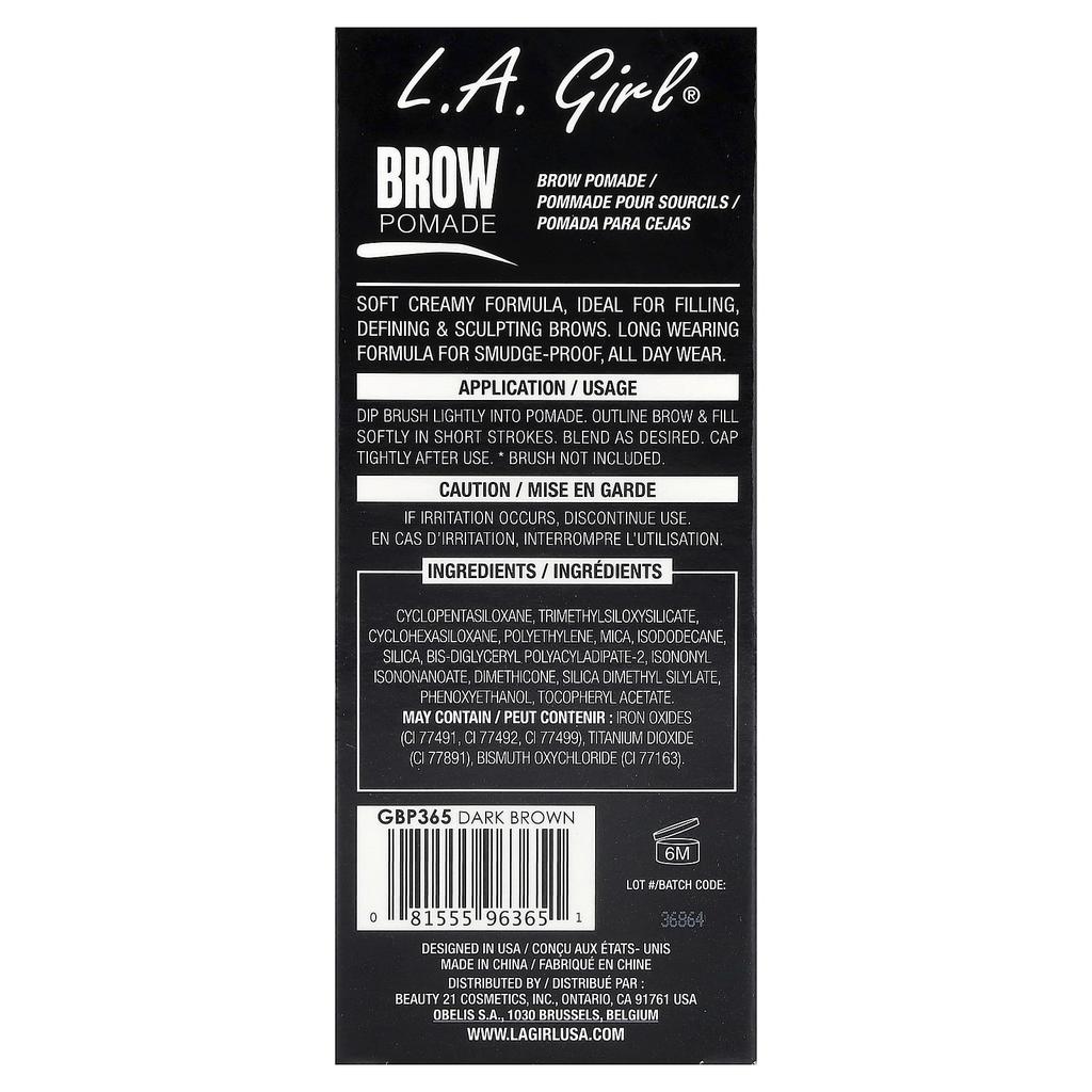 L.A. Girl Помадка для бровей, GBP 365 Темно-коричневый, 3 г (0,11 унции)