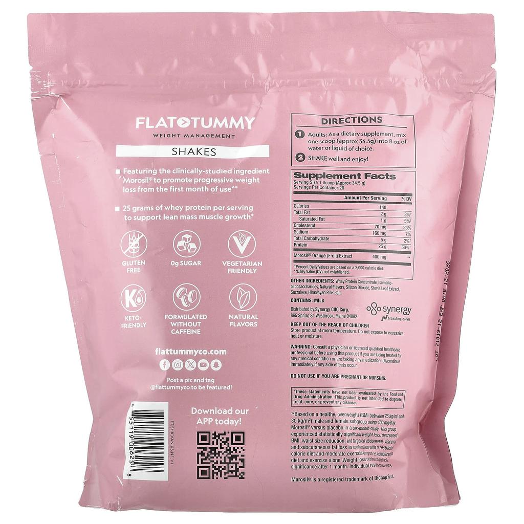 Product Description: Weight ManagementLose weight in 30 days∨Shrink your waist circumference by 1.8 times.∨Notable reduction in BMI∨SupplementsContains other natural flavorsGluten-free0g sugarSuitable for vegetariansKeto friendlyCaffeine-freeNatural flavorsSynergistic effectPer serving: 25g whey protein0g sugar150 caloriesContains Morosil®, a clinically studied ingredient, to promote gradual weight loss from the first month of use.∨25g whey protein per serving to help build lean muscle.∨^Based on a subgroup of healthy overweight men and women (BMI 25kg/m2 - 30kg/m2) who took 400mg Morosil® per day or a placebo in a 6-month study. This group experienced statistically significant weight loss, BMI, waist size reduction, and reductions in abdominal, visceral, and subcutaneous fat when combined with a calorie-restricted diet and moderate exercise program, compared to diet and exercise alone. The weight loss was statistically significant after one month. Individual results may vary.