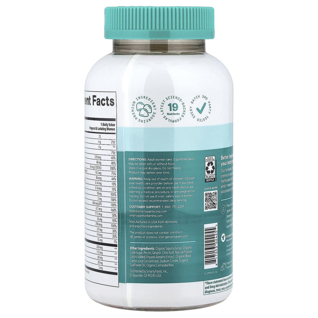 Product Description: 60mg of Omega-3 DHA per 3 gummies; Folic acid to support fetal brain and spinal cord development; Iodine to support fetal cognitive development; Choline to support normal fetal development; Clean Label Project® Purity Award Certified; igen™ Non-GMO Tested; Certified Gluten-Free; Supplement Sourced from Premium Ingredients; 19 Nutrients in a Scientifically Proven, Latest Formula; Every Batch Third-Party Tested; Includes Additional Natural Flavors; Provides Better-For-You Ingredients Your Body Loves; Our formula contains premium ingredients that are easily absorbed by the body, including methylated forms of nutrients.