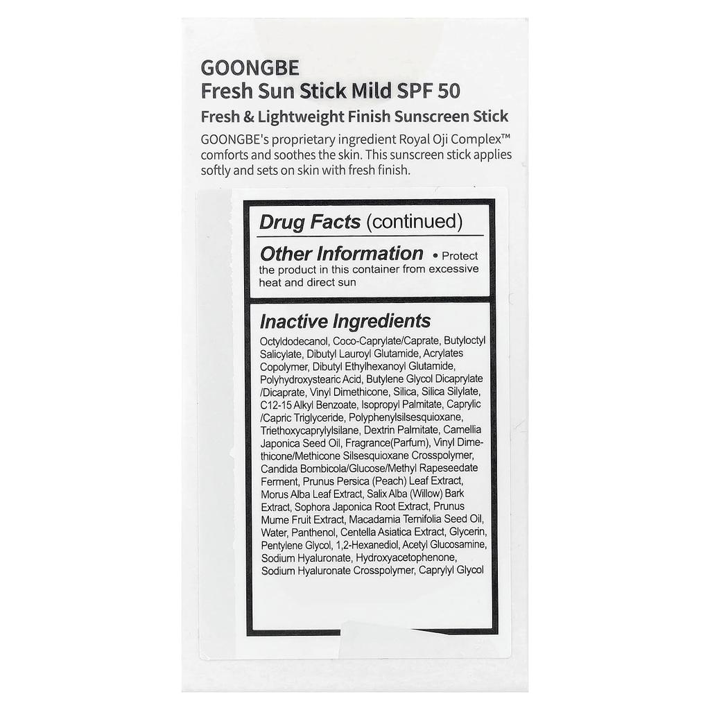 Описание товара: Широкий спектр SPF 50, Мягкий минеральный солнцезащитный стик Royal Oji Complex™, Мягкий и матовый. Этот солнцезащитный стик имеет освежающий, легкий финиш. Собственный комплекс Royal Oji Complex™ от GOongbe успокаивает кожу. Этот солнцезащитный стик легко скользит по коже и оставляет освежающий финиш. Использует: Предотвращает солнечные ожоги.