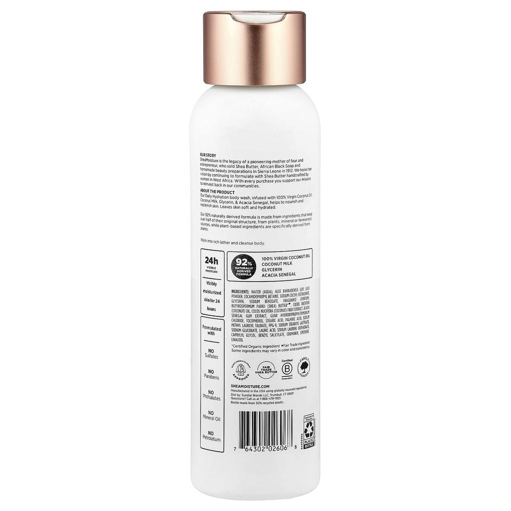 Описание товара: Основано в 1912 годуВидимое 24-часовое увлажнениеВидимое 24-часовое увлажнениеСодержит масло ши, полученное по программе справедливой торговли, и растительные увлажнителиОдобрено дерматологом-афроамериканцемB. Corp. Сертифицированный семейный бизнесНатуральная формула92%Кокосовое молокоГлицеринГуммиарабикО насSheaMoisture — это наследие матери-первопроходца и четырех детей, которые начали продавать масло ши, африканское черное мыло и самодельную косметику в Сьерра-Леоне в 1912 году. Мы продолжаем видение Софи Такер, создавая продукты с маслом ши, изготовленные вручную женщинами Западной Африки.. Сведения о продуктеНаш ежедневный увлажняющий гель для душа, обогащенный 100% кокосовым маслом первого отжима, кокосовым молоком, глицерином, гуммиарабиком и гуммиарабиком, питает кожу. Оставляет кожу мягкой и увлажненной. Формула на 92% состоит из натуральных ингредиентов, включая растения, минералы и ферментированные ингредиенты. Ботанические ингредиенты специально извлекаются из растений. Особенности ингредиентов: Без сульфатов, Без парабенов, Без фталатов, Без минерального масла, Без вазелина