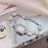 Прямоугольные часы-браслет с перламутровым циферблатом и простым кварцевым механизмом, сверкающие, с маленькими кубиками сахара, застежкой-лобстером, регулируемые женские часы