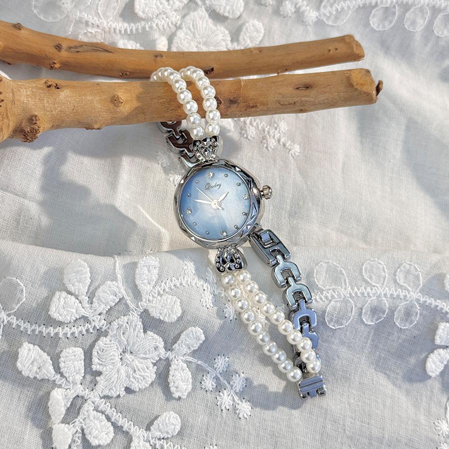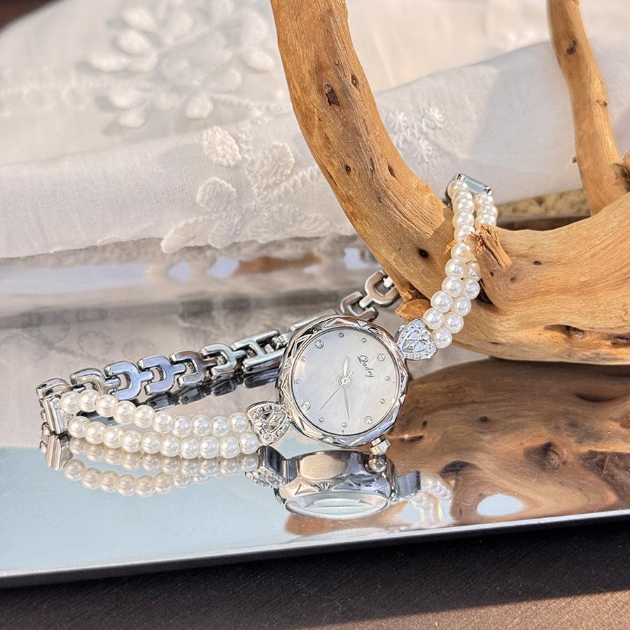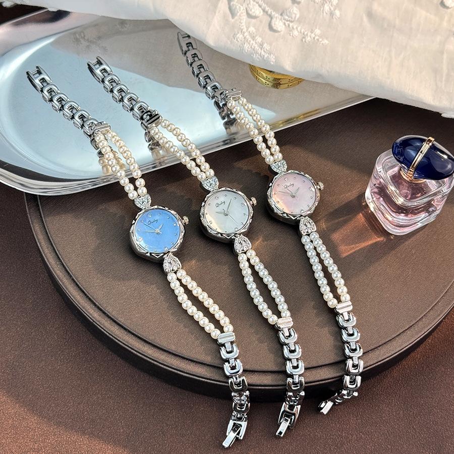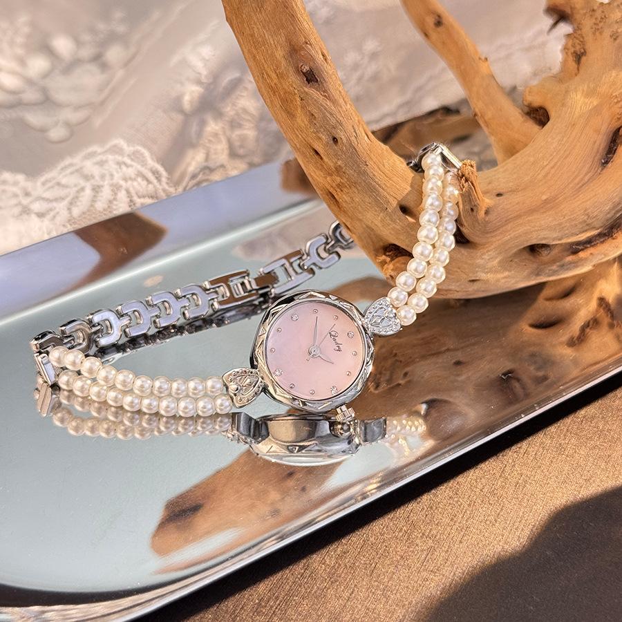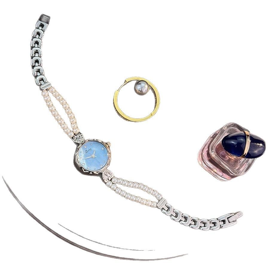 Изысканные часы-браслет с жемчугом в два ряда, легкая роскошь, французский нишевый средневековый кварцевый механизм