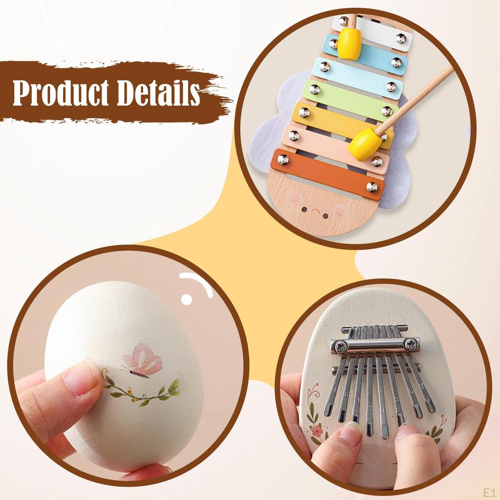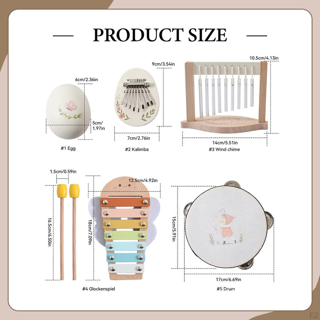 - 【Learning Toys】: The Wooden Sensory Toys can improve children's hand eye coordination and other motor skills. Including Egg Rattle, Thumb Piano, Glockenspiel with rod, Drum, Wind Chime