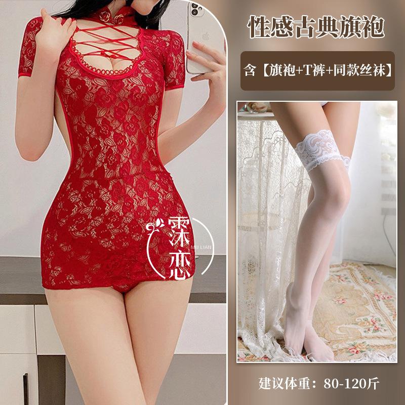 Sexy lingerie sexy cheongsam uniform seduction lace mesh perspective backless deep V tight straps