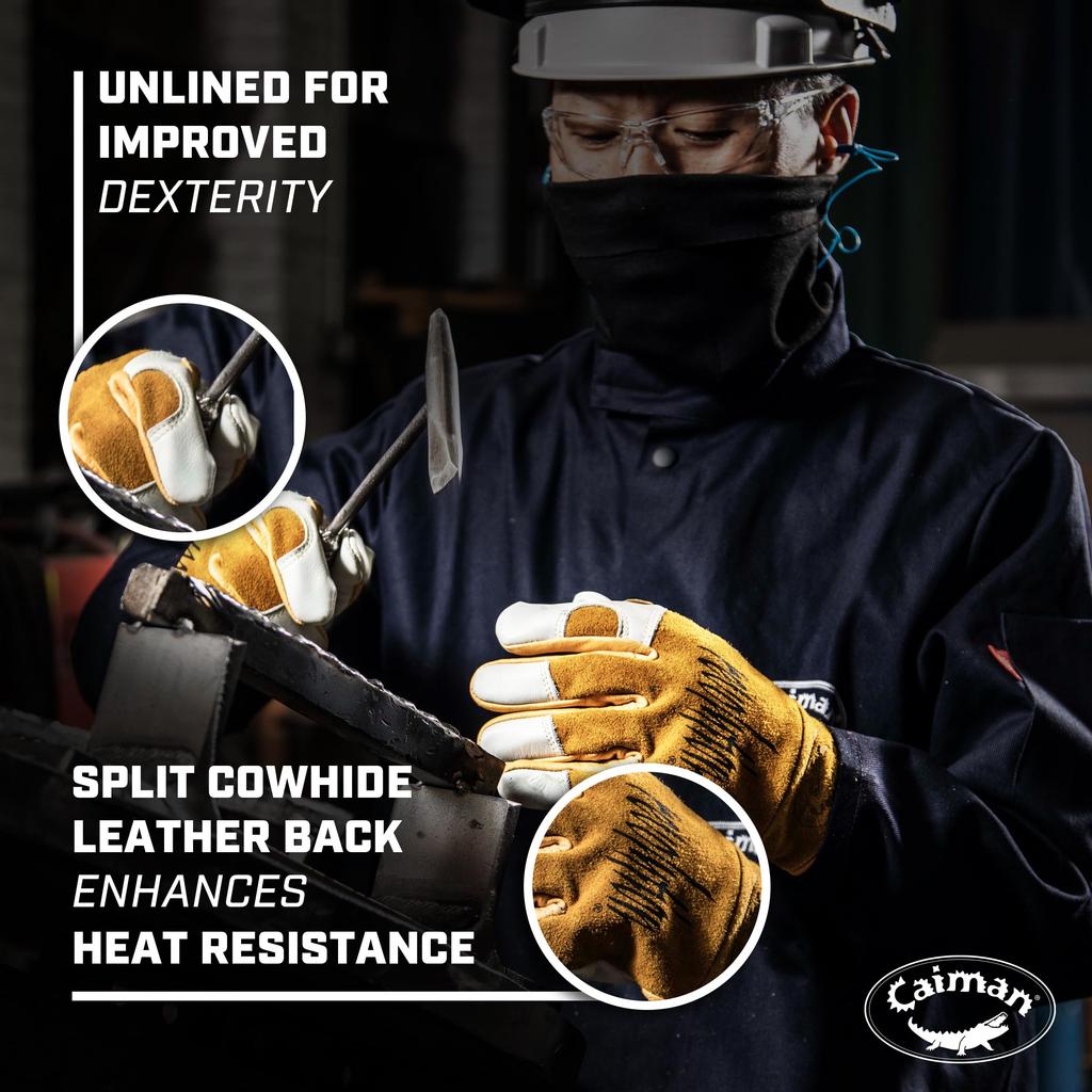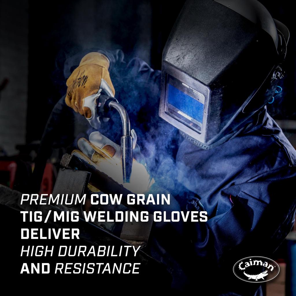 Перчатки Caiman Revolution из спилка коровьей кожи без подкладки для MIG-сварки с коротким раструбом Зернистая/Свиная Сварочные/Многоцелевые (M)