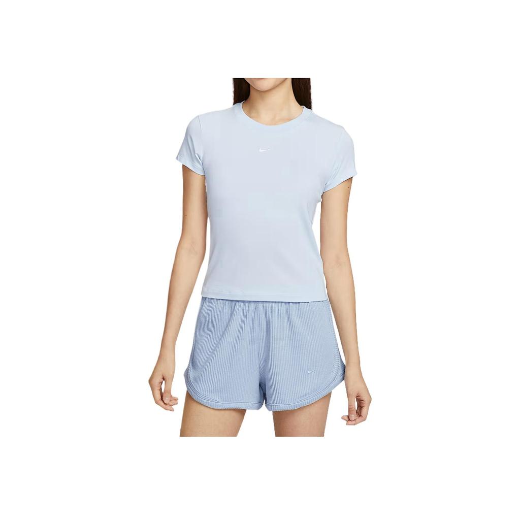 Nike Спортивная одежда Chill Knit Удобная Модная Универсальная Однотонная Футболка с коротким рукавом Женские топы Синий FV5509423