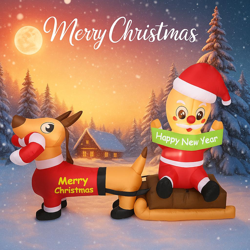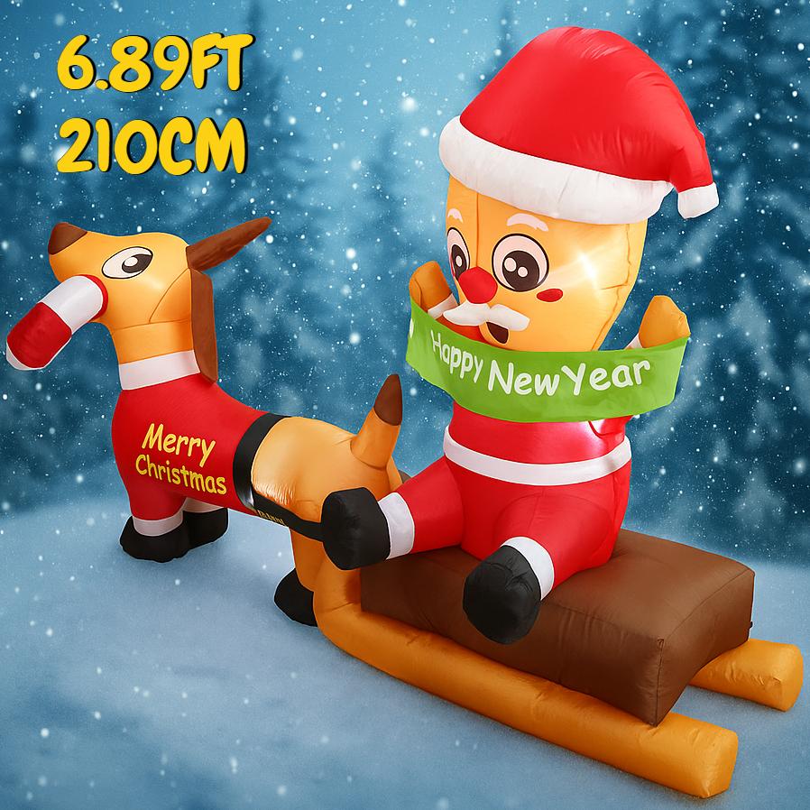 6.89ФТ Надувная игрушка Санта-сани Олень Светодиодные огни Рождественские украшения для двора Домашние украшения Украшение Праздничный подарок