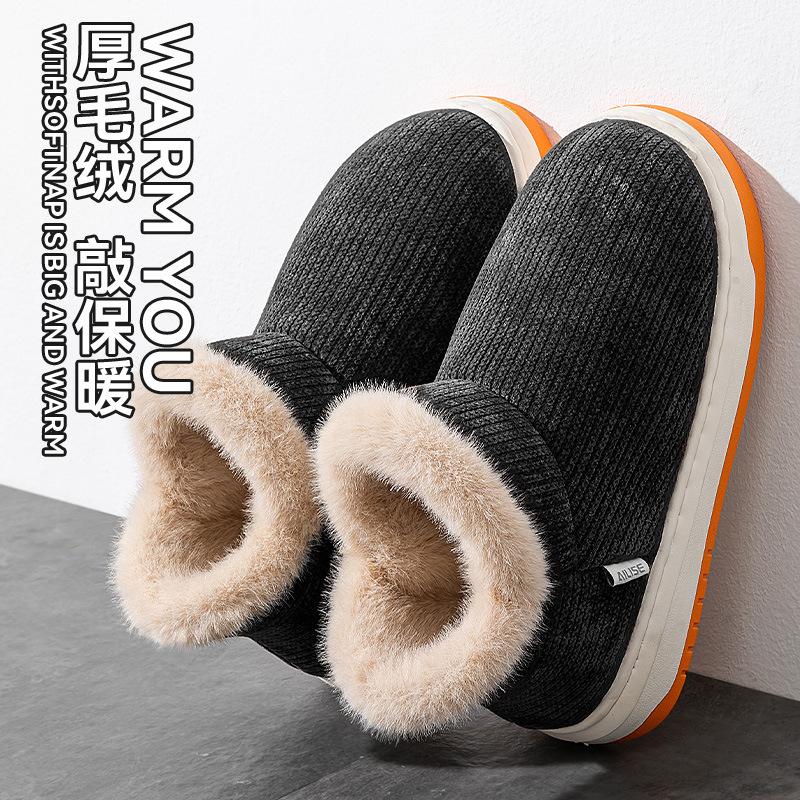 Хлопковые тапочки, Зимний каблук-мешок, Толстая подошва, Для дома, Предмет домашнего обихода, Бархатная изоляция, Нескользящие хлопковые туфли, Для ношения на улице осенью и зимой