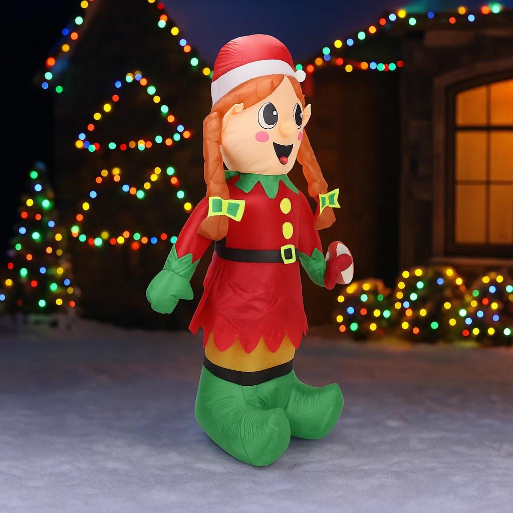 5.91ФТ Гигантская Надувная Игрушка Рождественский Эльф со Светодиодной Подсветкой Праздничные Подарки Рождественские Украшения для Двора Принадлежности Домашние Украшения