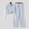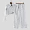 INCERUN Мужские наряды Стойка воротник Полосатый Длинный рукав Кроп-топы На молнии С высокой талией Длинные брюки Комплекты