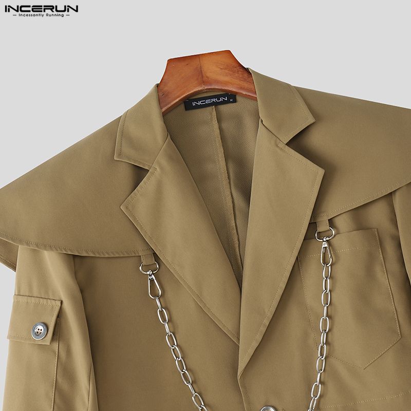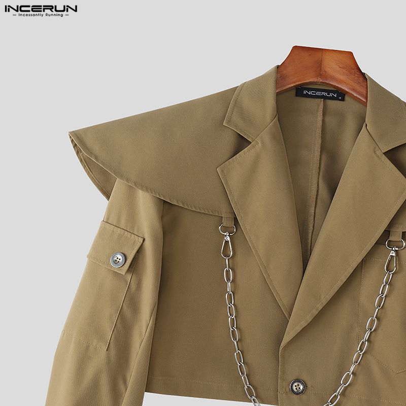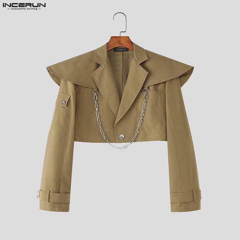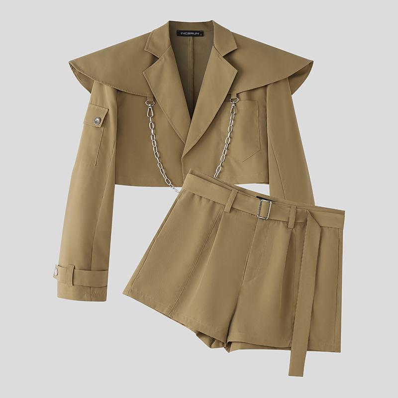 INCERUN 2 шт. Мужской костюм из двух предметов с лацканами, длинными рукавами, укороченными топами и брюками, повседневные комплекты