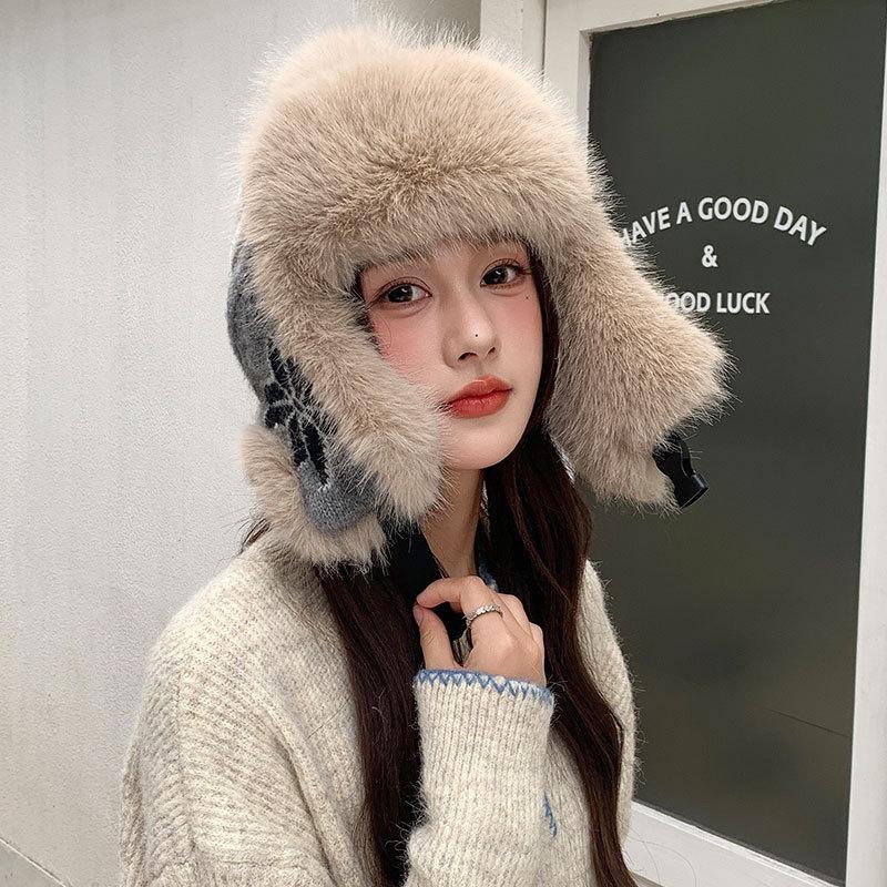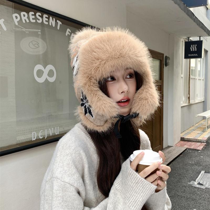 Модная цветная вязаная термошапка, женская флисовая утолщенная шапка-ушанка, флисовая шапка