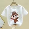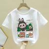 Модная белая детская футболка Labubu, милая мультяшная девочка, круглый вырез, короткий рукав, одежда, новый удобный свободный детский топ