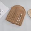 Пуловер из кроличьего меха, вязаная шапка, женская, осенне-зимняя, теплая шерстяная шапка, модный головной убор с жемчугом, для улицы