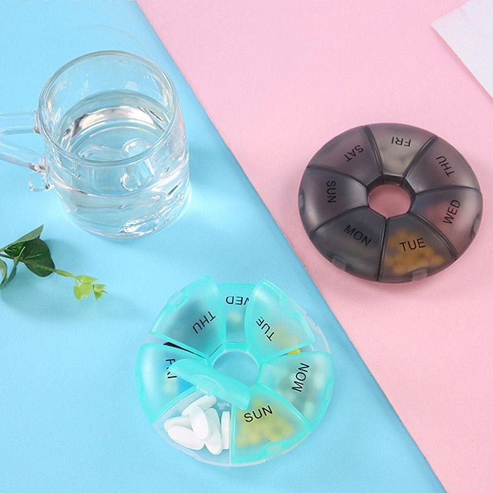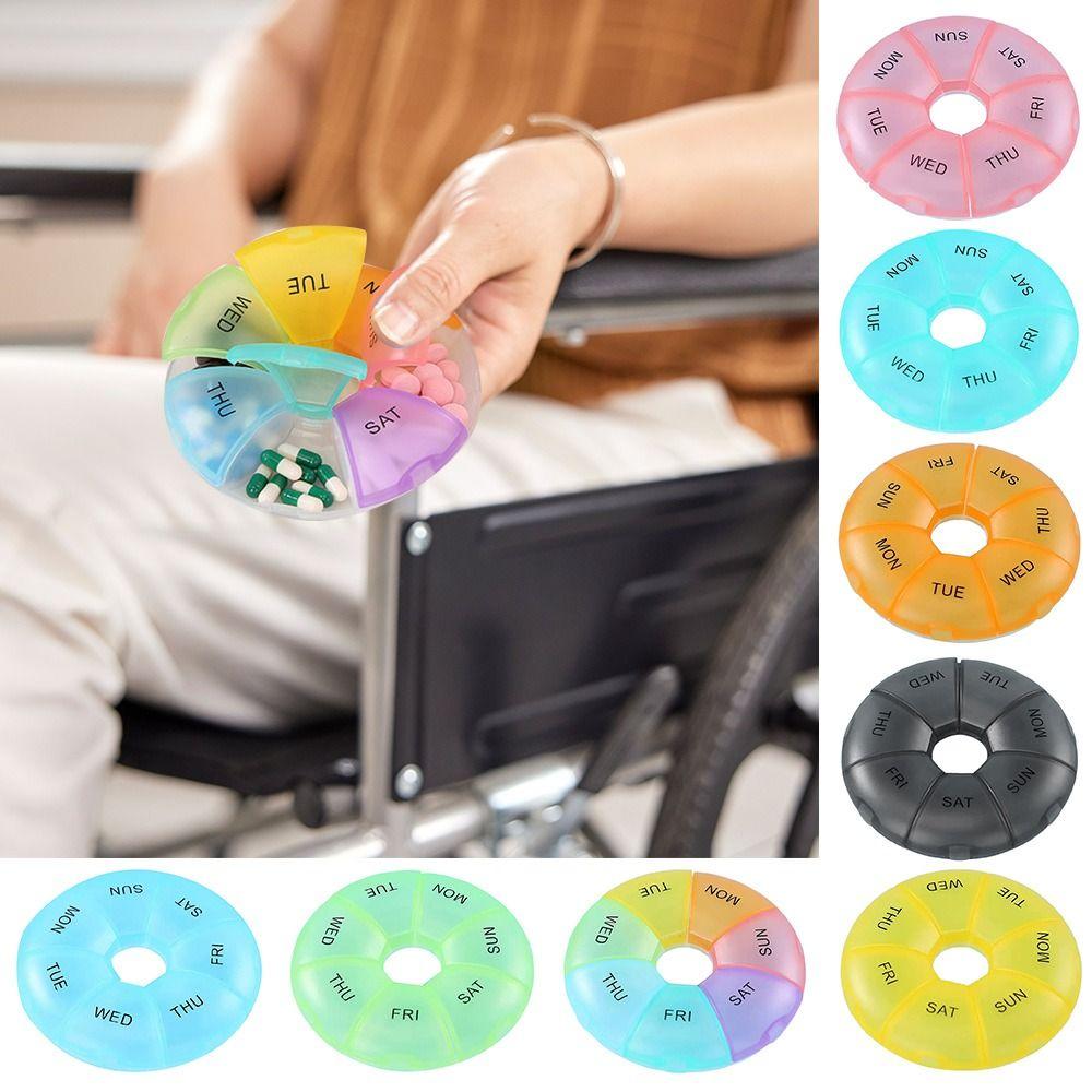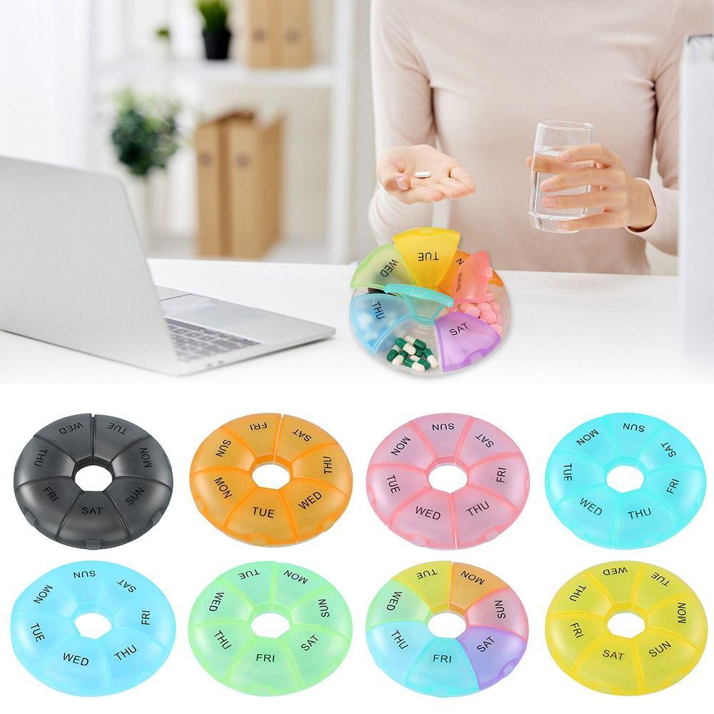 7 Grids Seven Days Pill Case Round Pill Dispenser Portable Tablet Container for Home&Travel