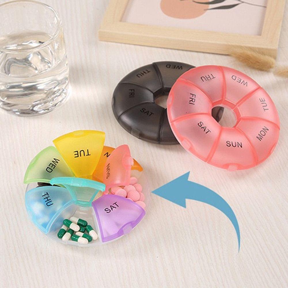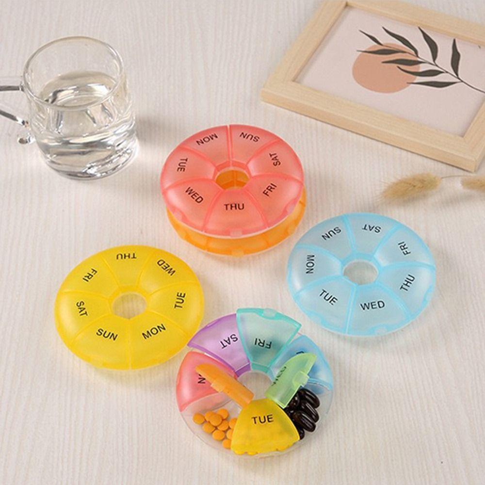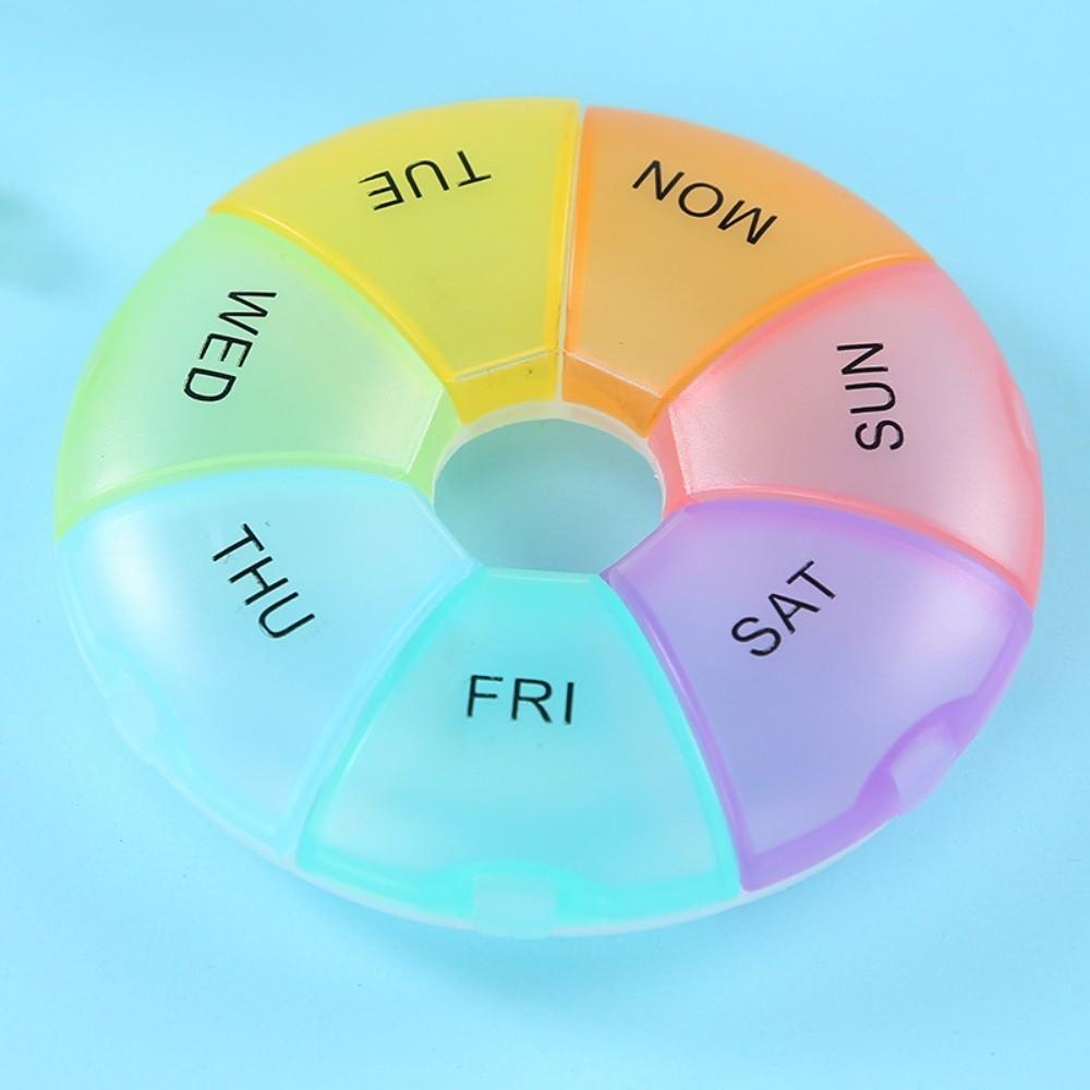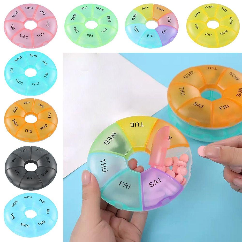 7 Grids Seven Days Pill Case Round Pill Dispenser Portable Tablet Container for Home&Travel