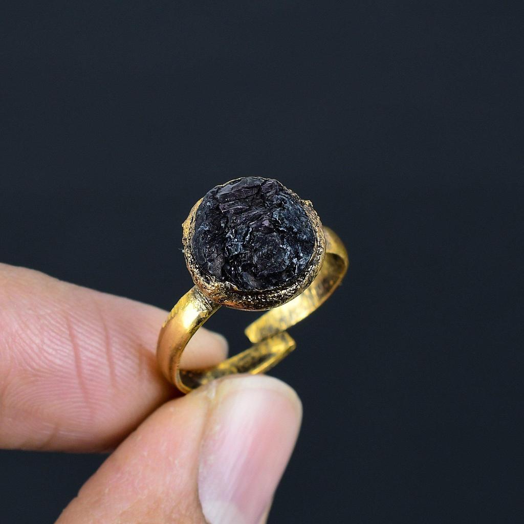 Кольцо из необработанного черного оникса ручной работы, кольцо из электроформированной меди, антикварное украшение, регулируемое кольцо, подарок на помолвку