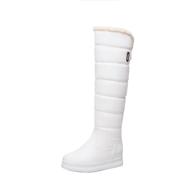 Зимние теплые розовые белые зимние сапоги женские туфли на низком каблуке сапоги до колена женские плюшевые длинные лодочки на платформе Mujer черные