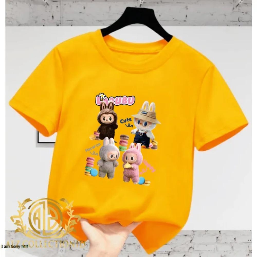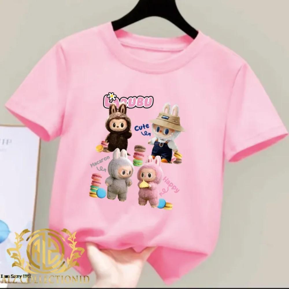 2025 Новая детская футболка Модный и универсальный стиль С принтом Happy LABUBU Круглый вырез Короткий рукав Повседневный топ для девочек