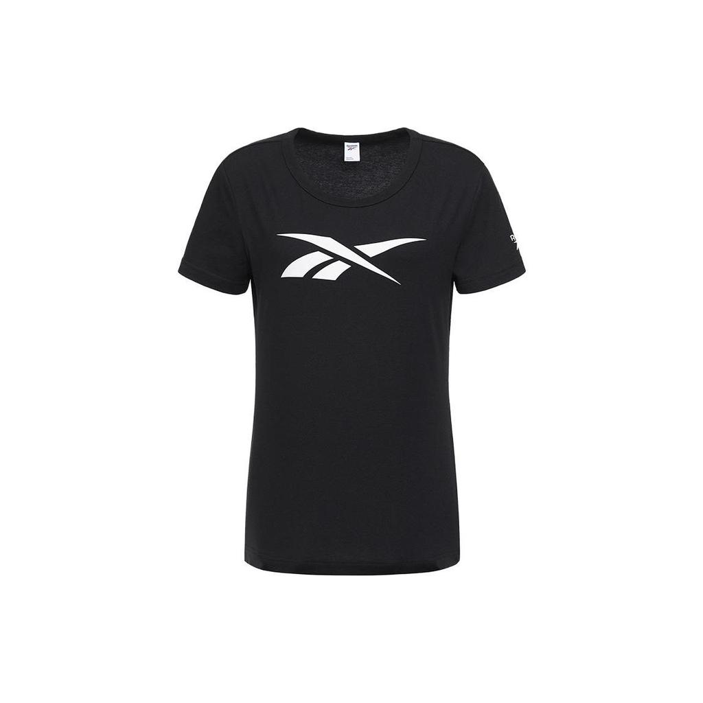 Reebok Простое Повседневное Спортивное Фитнес Логотип Удобная Универсальная Футболка с Круглым Вырезом и Коротким Рукавом Женская Футболка Черная GV5523