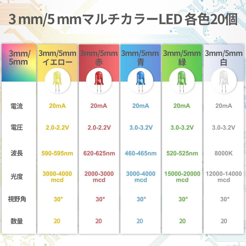 [Детали продукта] Светодиоды 3 мм, 5 цветов, по 4 каждого цвета, всего 20 штук.