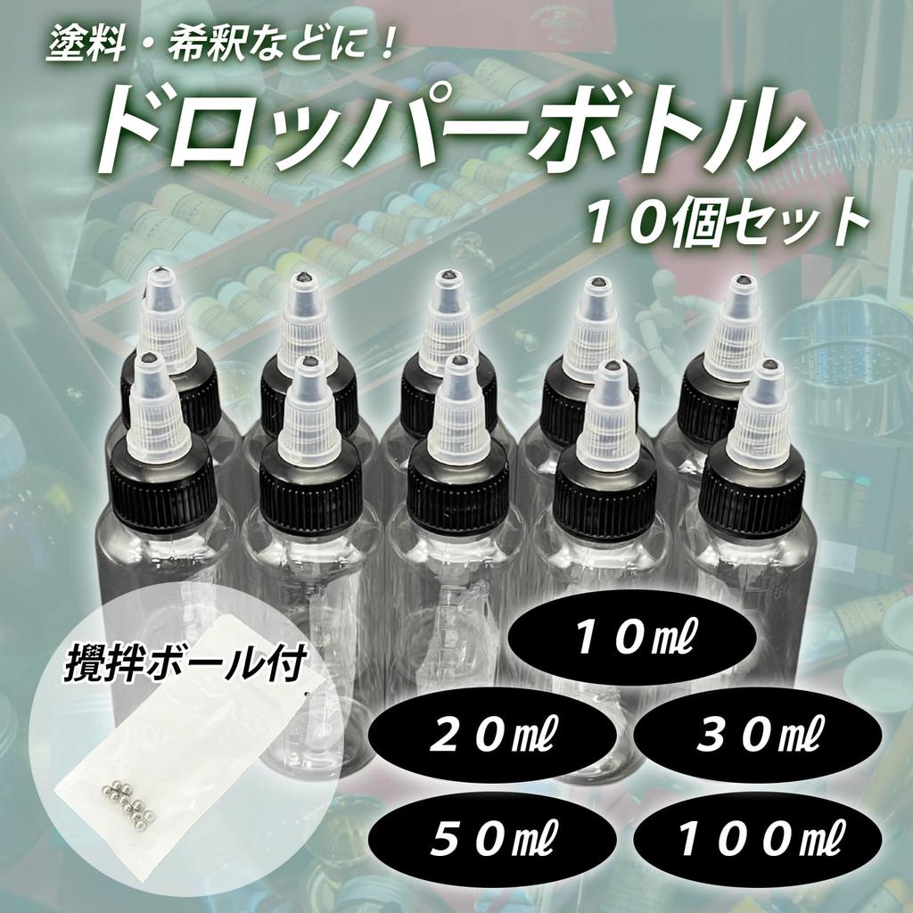 Доступно в пяти размерах бутылок: 10 мл, 20 мл, 30 мл, 50 мл и 100 мл. Идеально для смешивания и порционирования краски, вы можете выбрать бутылку, которая лучше всего соответствует вашим потребностям, например, для сборки пластиковых моделей или создания произведений искусства.