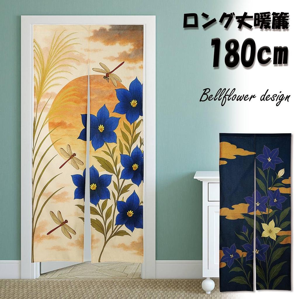 Норен 180 см с Колокольчиком и Цветком Японский Длинный с Натяжением Комнатная Драпировка Экран для Конфиденциальности next.design Занавеска, Высокий, Дизайн, Лето/Осень,