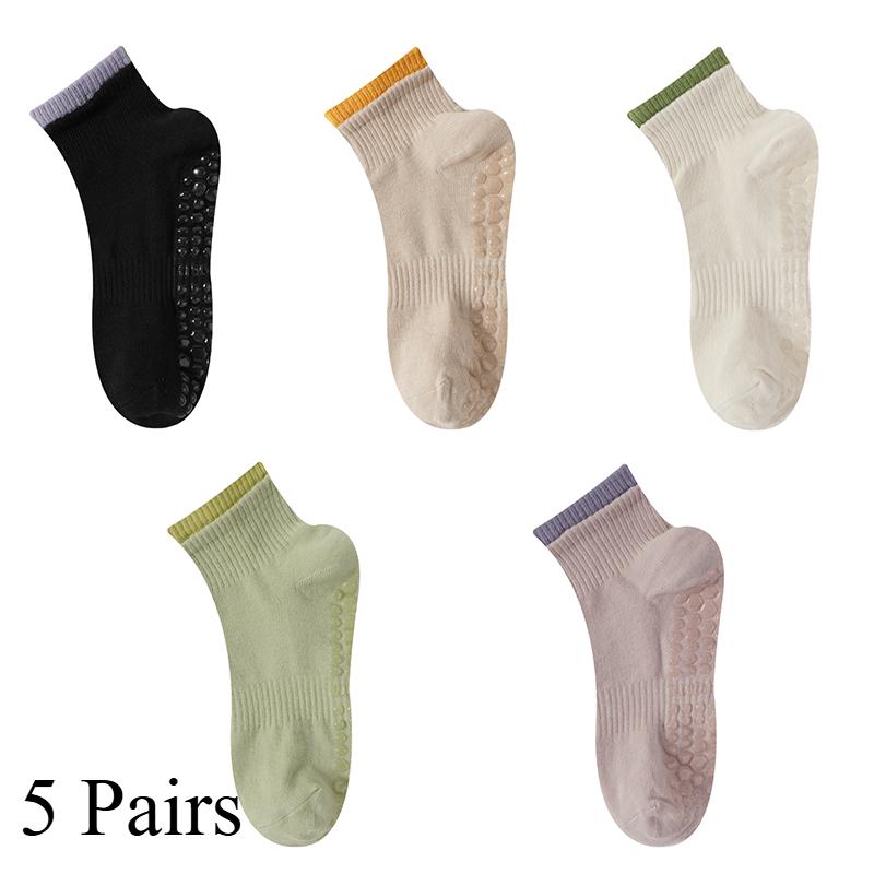 5 пар модных носков для йоги, женские носки для пола, хлопковые носки в корейском стиле, спортивные носки для танцев, профессиональные нескользящие силиконовые носки