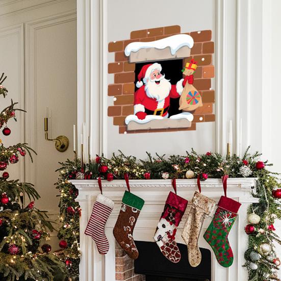 Праздничный дизайн: Эта наклейка с Санта-Клаусом, пробивающим стену, создает радостную рождественскую атмосферу.. Идеально подходит для детских комнат или жилых помещений, наполняя теплом и праздничным настроением любую обстановку.