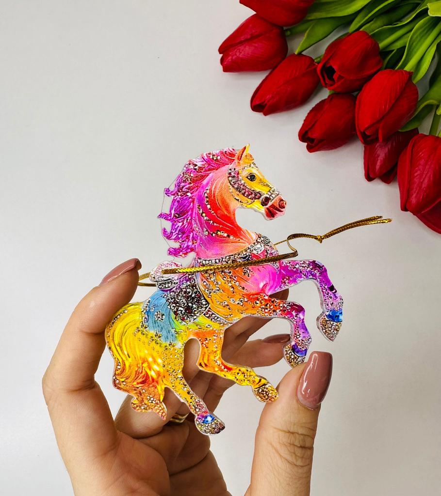 Лошадь Украшение Сверкающий Страз Лошадь Украшение на Елку 2D Акриловая Подвеска Праздничный Сувенир Подарки для Женщин Девушек Любителей Лошадей