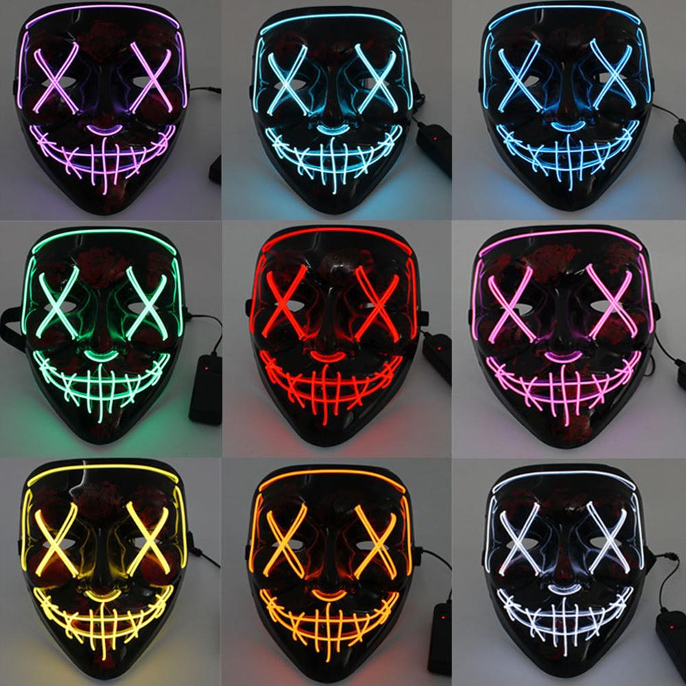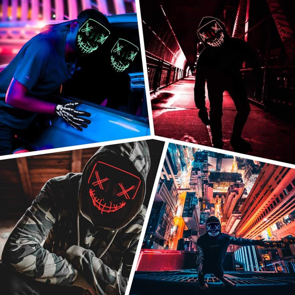 Светодиодная светящаяся маска на Хэллоуин, светодиодная маска для вечеринки, маскарадная маска, неоновая маска, светящаяся в темноте, реквизит для ужасов, костюм для вечеринки