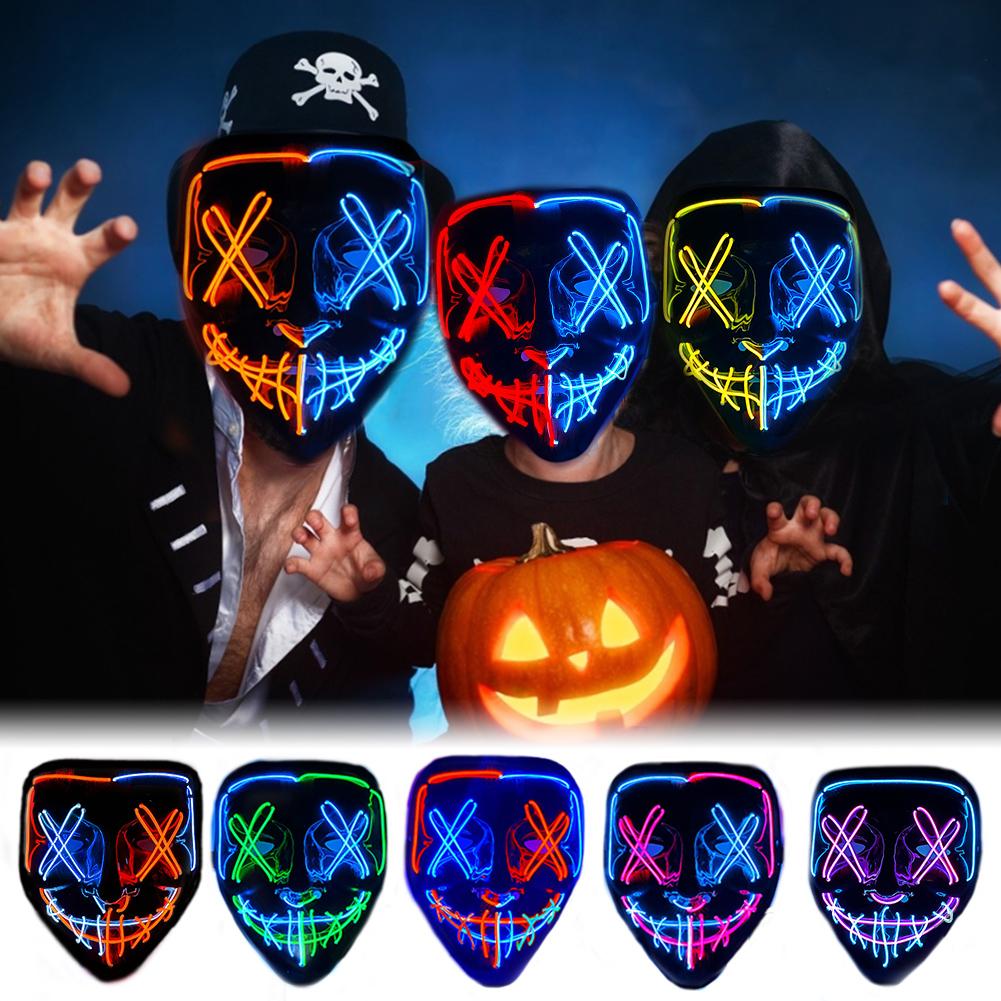 Светодиодная светящаяся маска на Хэллоуин, светодиодная маска для вечеринки, маскарадная маска, неоновая маска, светящаяся в темноте, реквизит для ужасов, костюм для вечеринки