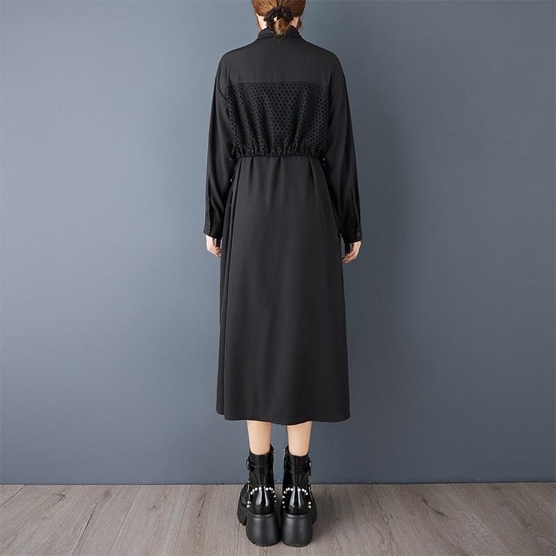 Платье-рубашка с длинным рукавом, большого размера, черное, винтажное, новое, для женщин, повседневное, свободное, весенне-осеннее