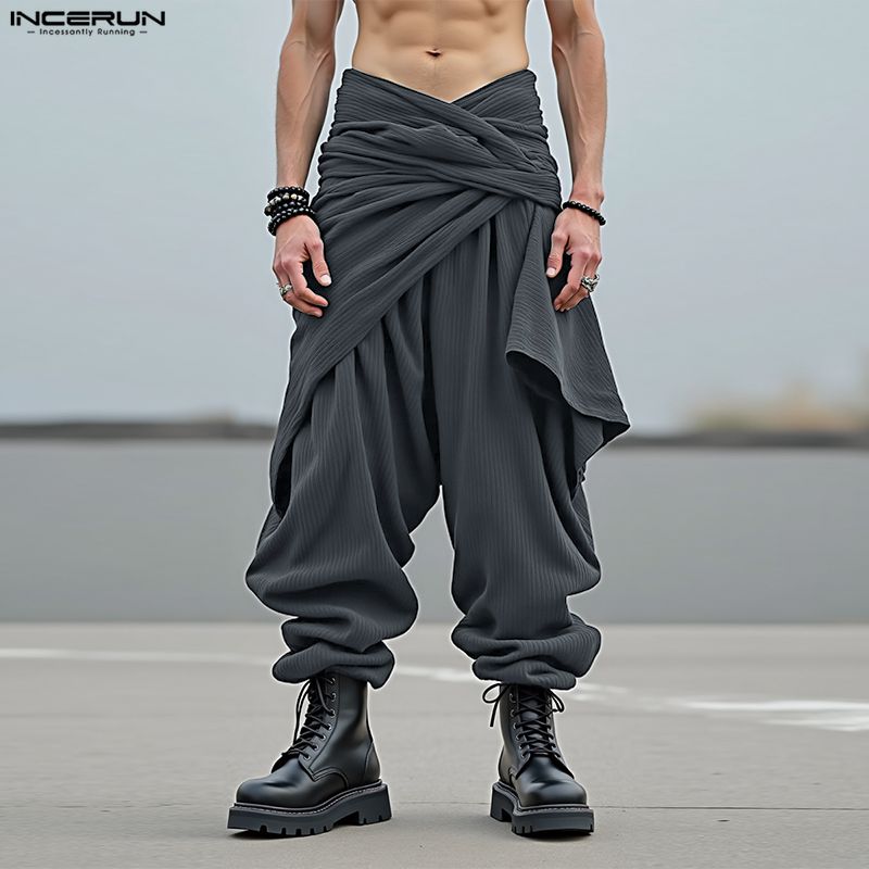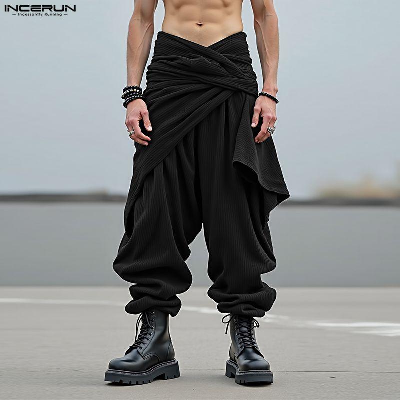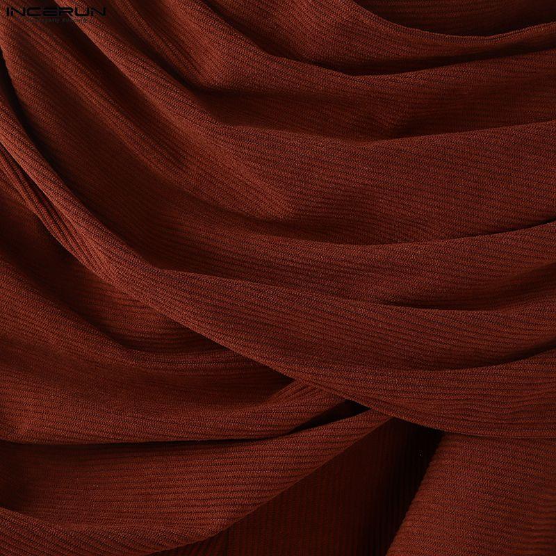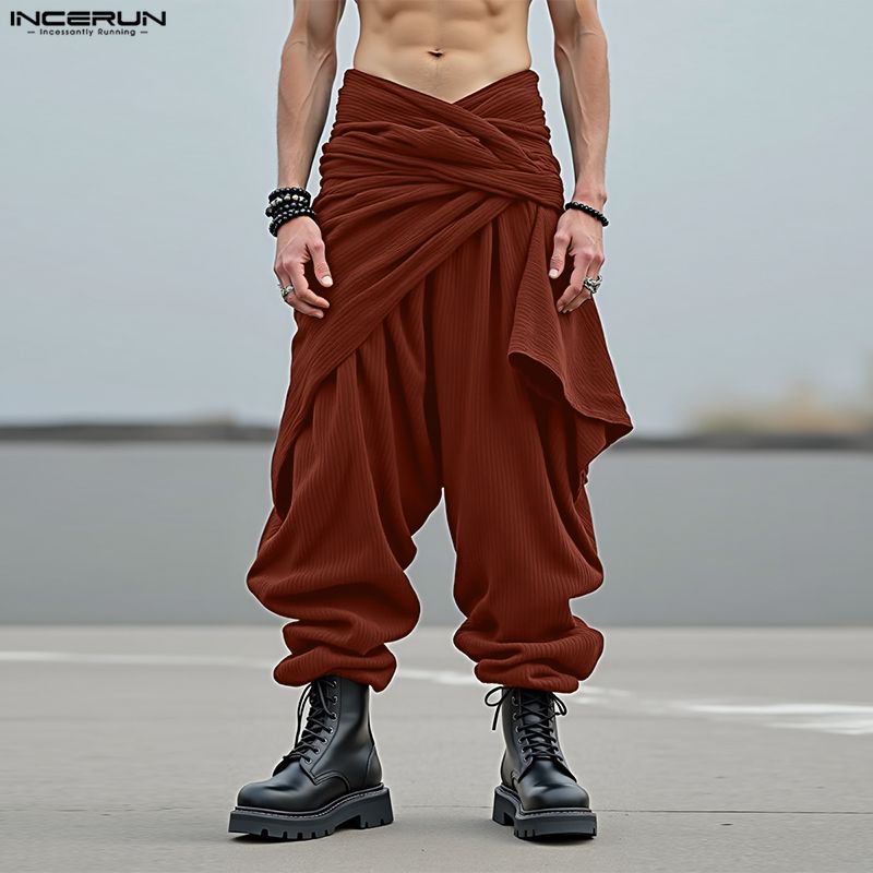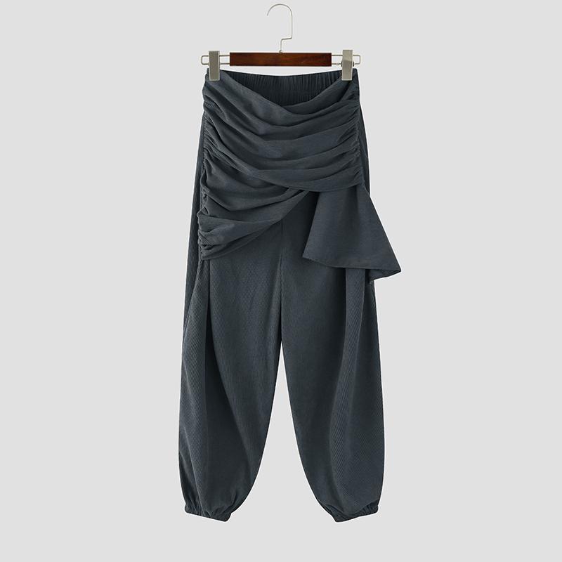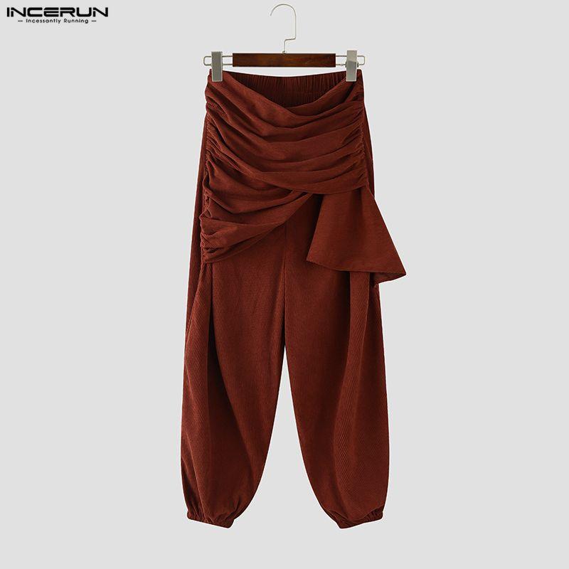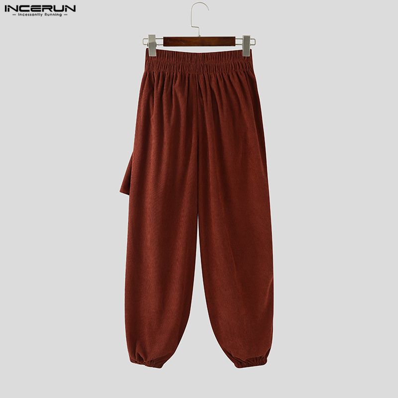 INCERUN Мужские повседневные брюки-шаровары с эластичной талией, текстурированным вельветом и заниженной мотней