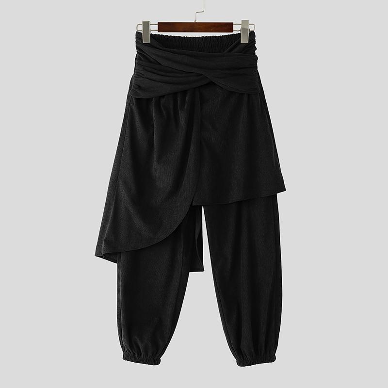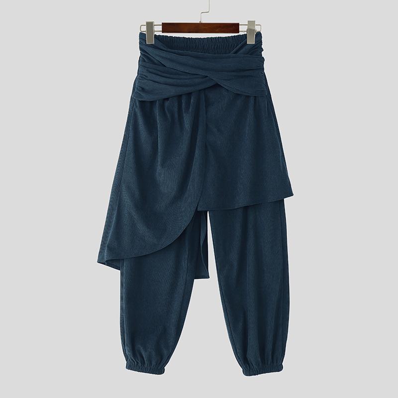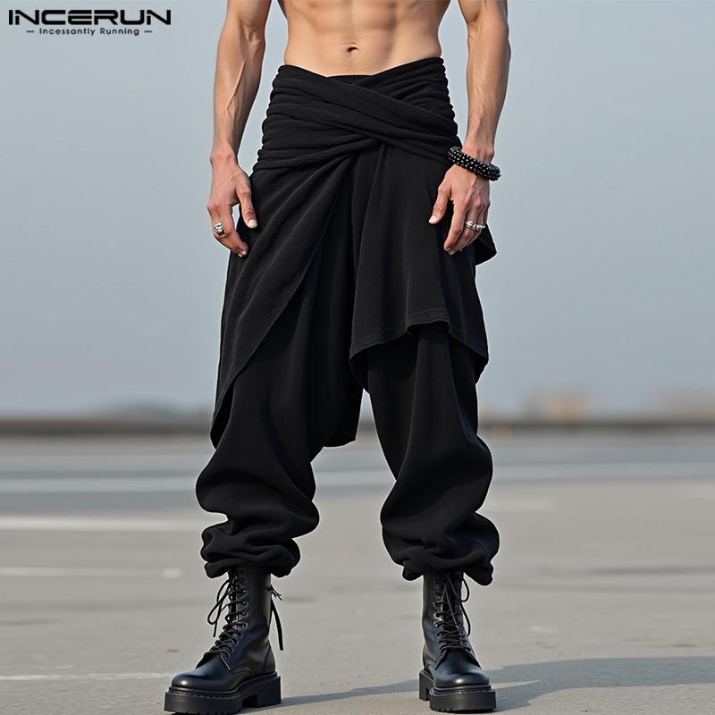INCERUN Осенние мужские повседневные вельветовые брюки гаремы с эластичной талией, рюшами и неровным низом