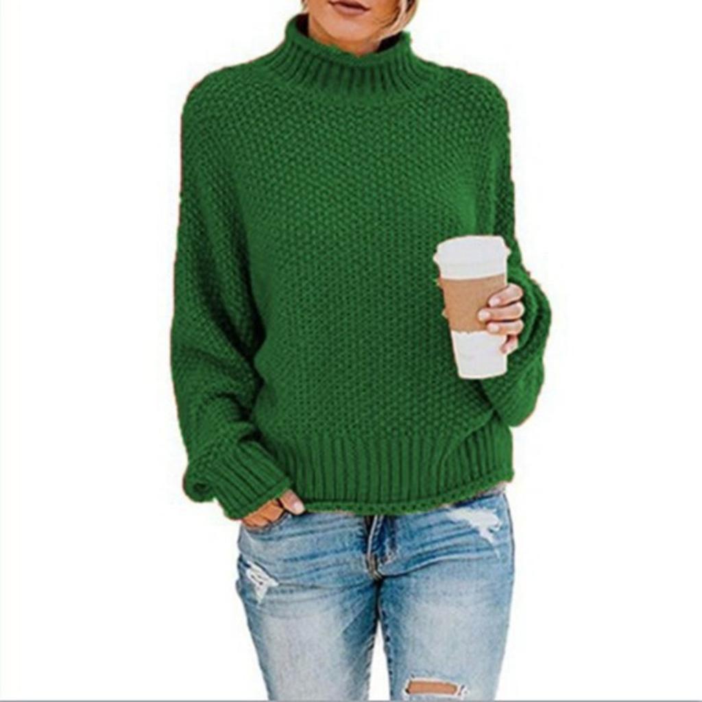 Свитер с высоким воротником Женский осенне-зимний вязаный свитер Свободный однотонный большого размера Повседневная женская одежда