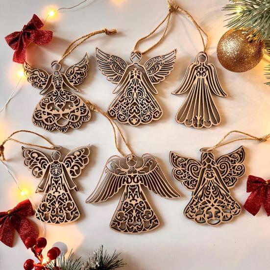 Сложный полый дизайн: Украсьте свою рождественскую елку этим изысканным деревянным ангелом с детальным ажурным дизайном.. Нежные крылья и элегантный силуэт ангела воплощают спокойствие и радость праздничного сезона, добавляя нотку вневременного очарования вашей праздничной атмосфере.