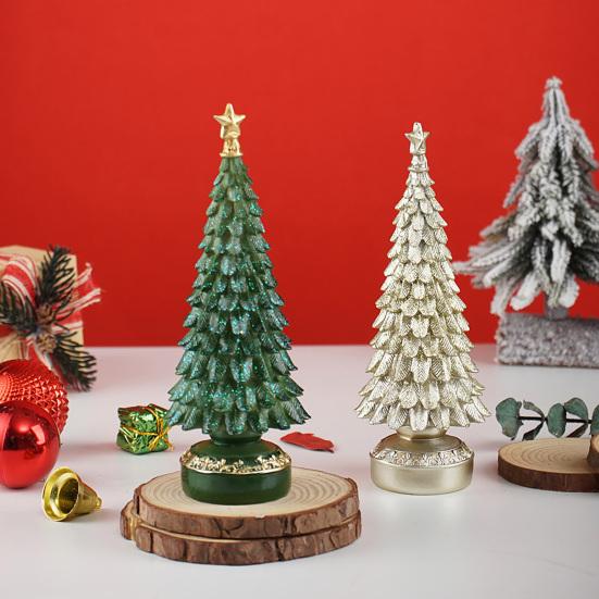 Мастерство изготовления из прочной смолы: Эта статуэтка рождественской елки, тщательно изготовленная из смолы премиум-класса, отличается исключительной долговечностью.. Благодаря устойчивому к выцветанию и водонепроницаемому покрытию, он сохраняет свою изысканную красоту с течением времени, служа вневременным дополнением к вашей коллекции праздничного декора.
