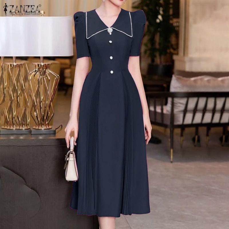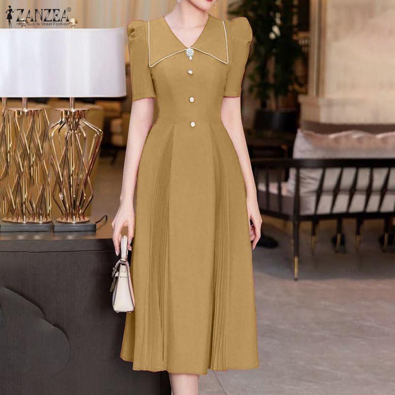 ZANZEA Элегантное женское повседневное платье с кукольным воротником, рукавом до локтя и длинным подолом