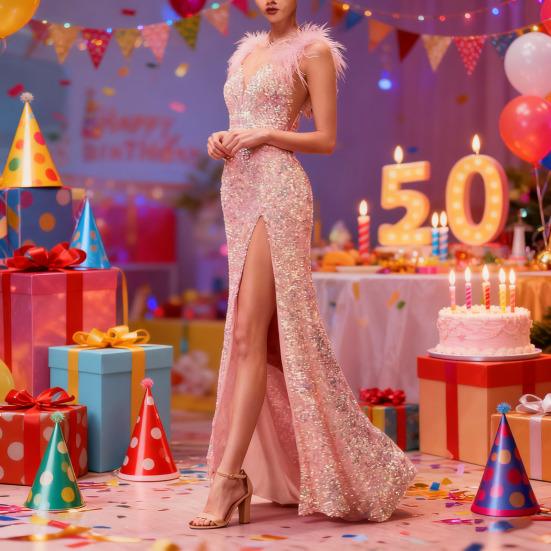 Элегантный дизайн с блестками: Женское платье из полиэфирного волокна украшено изысканными пайетками, подчеркивающими вашу привлекательность.. Дизайн с глубоким V-образным вырезом излучает очарование и изысканность, идеально подходит для коктейльных вечеринок или особых мероприятий.